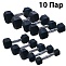 Набор включает следующие гантели: 2 x 1 кг, 2 x 2 кг, 2 x 3 кг, 2 x 4 кг, 2 x 5 кг, 2 x 6 кг, 2 x 7 кг, 2 x 8 кг, 2 x 9 кг, 2 x 10 кг